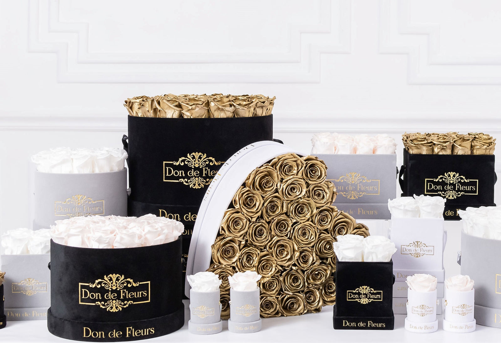 A beautifully crafted bouquet of roses is a gift that never fails to speak volumes. Whether it says, “I’m sorry”, “Happy Anniversary”, or “I love you”, roses are the perfect gift for any occasion. Preserved roses are a splendid option that exudes long-lasting elegance. Each of Don de Fleurs® roses undergoes a unique and intricate process to preserve its beauty and integrity. Once the roses are perfectly preserved, we dye a portion of them with rich, vibrant colors; the others we leave in their original color for our customers who appreciate the natural beauty of roses. Our selection of preserved roses for sale are natural roses that last a year or more, allowing you to marvel at their exquisiteness day and night.
